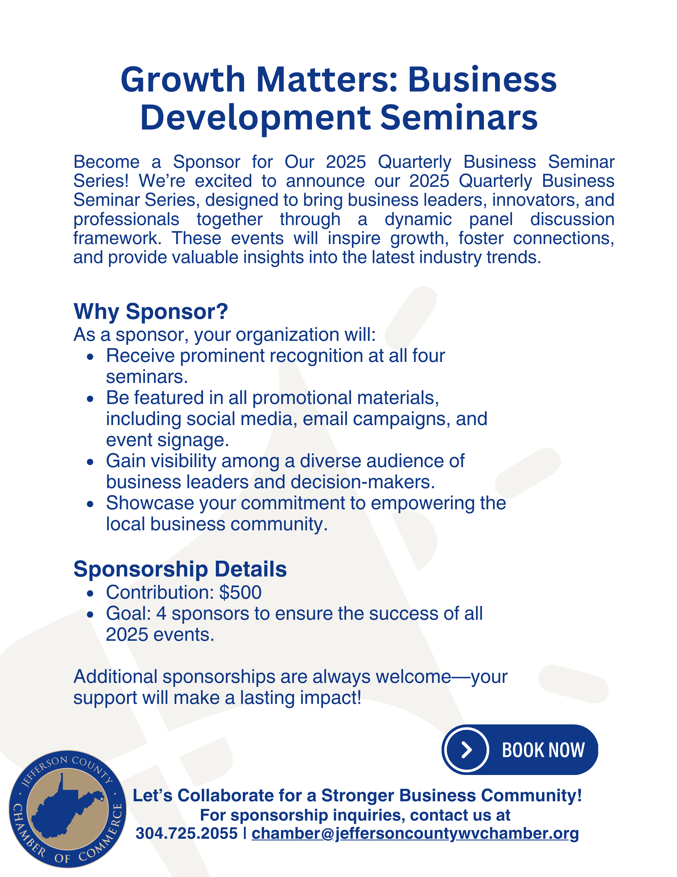 Are you ready to take your business to the next level? Join us for the Growth Matters: Business Development Seminars—a unique opportunity to gain invaluable insights, strategies, and tools to fuel your growth and success in today’s competitive market.