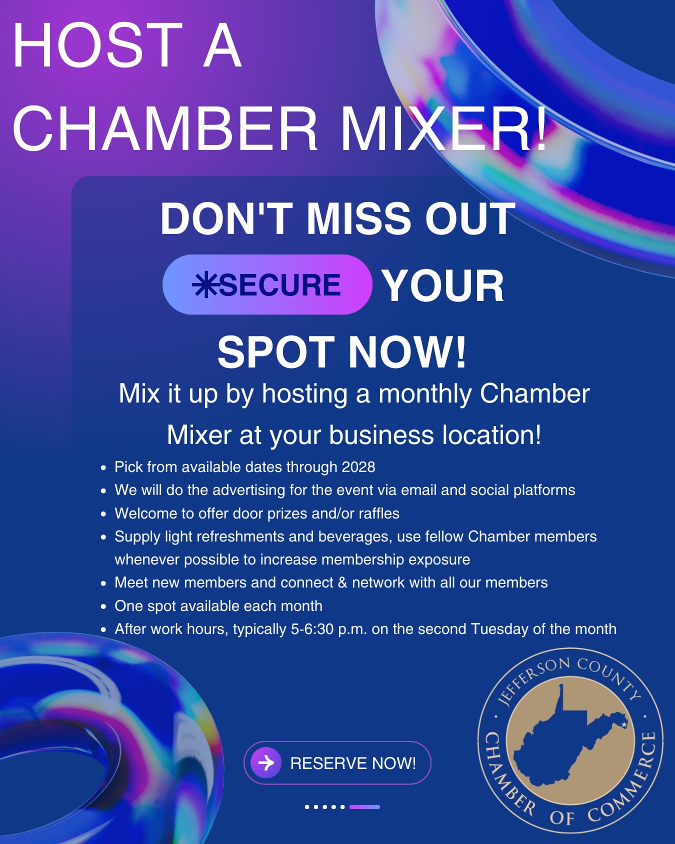 Mix it up by showing off your business by hosting a Monthly Chamber Mixer! Hosting a Chamber Mixer at your business offers numerous benefits, both for your company and for your community involvement. Here are some key advantages: