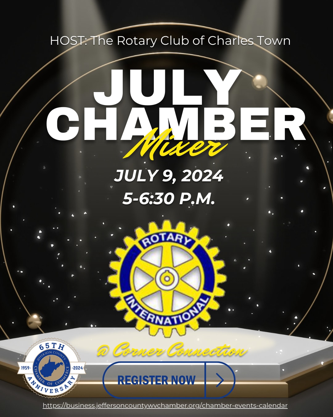 Join us for the July Monthly Chamber Mixer, hosted by the Rotary Club of Charles Town! Great Networking event at Corner Connection!
